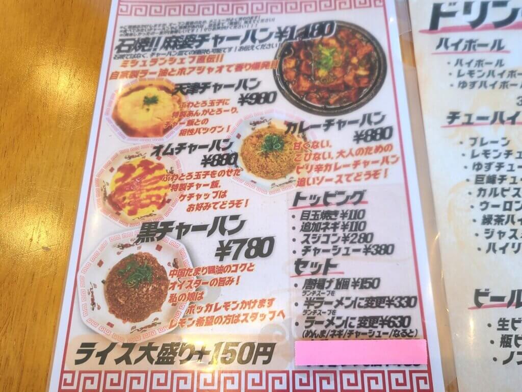 パッと見でチャーハンメニューの多さがわかりますね! これは期待大! さっそくお店の中へ!
