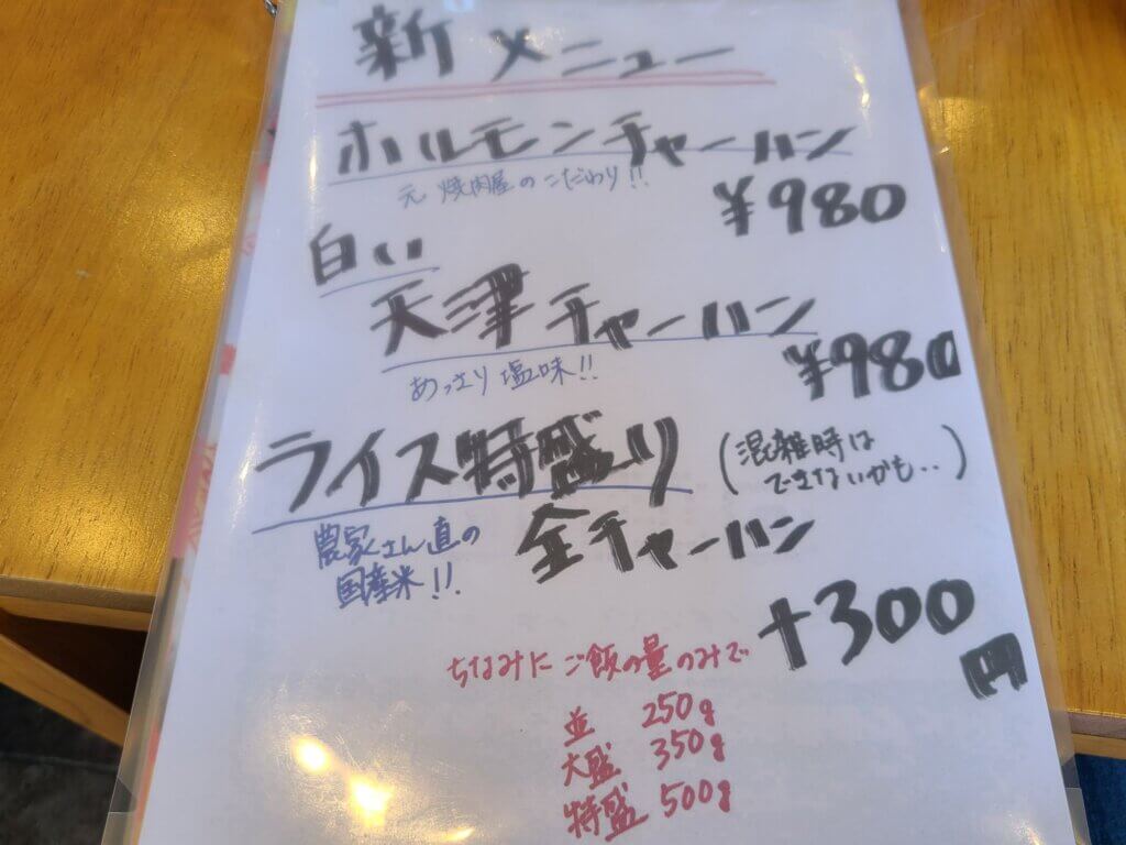 「ホルモンチャーハン」「白い天津チャーハン」など、メニューも豊富!
