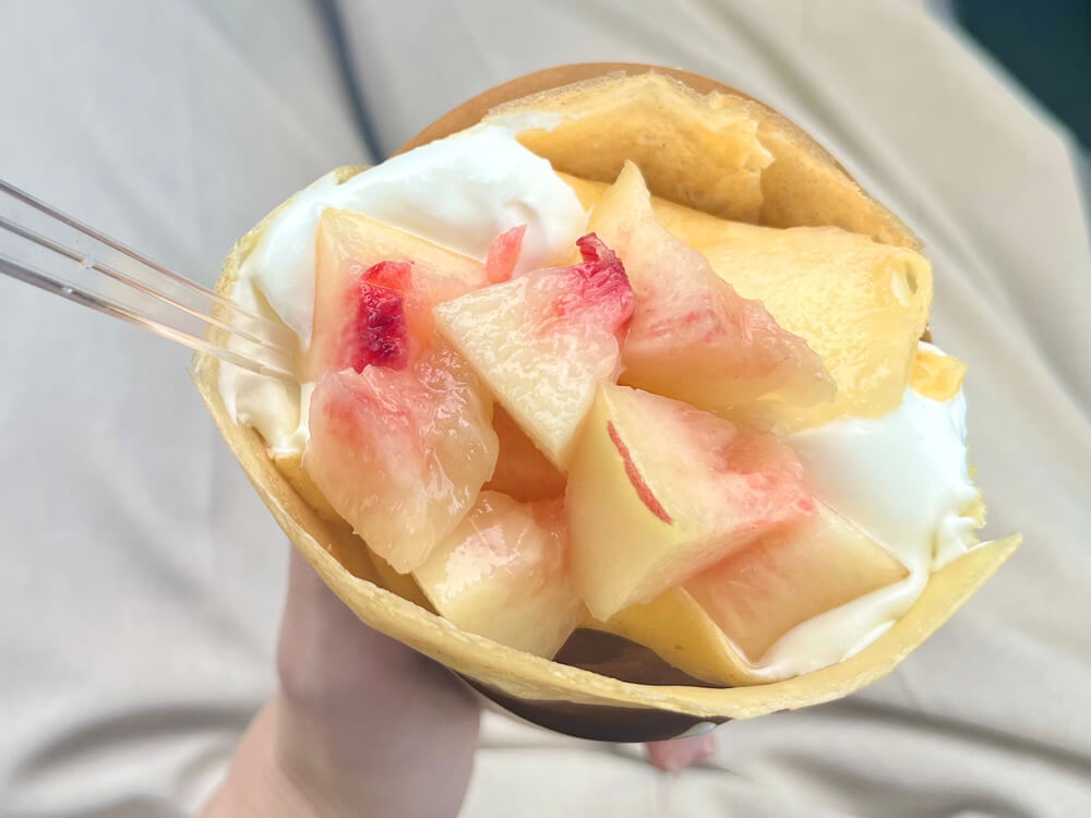 桃を丸ごと1個使った、贅沢すぎる季節限定クレープ