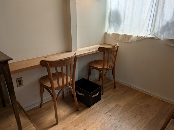 木のテーブルや椅子は少し使い込まれた風合いがあり、ナチュラルで温かみを感じますね。