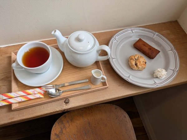 今回は、米粉のフィナンシェとスコーンの紅茶のセット、単品でオートミールクッキーをいただきました。
