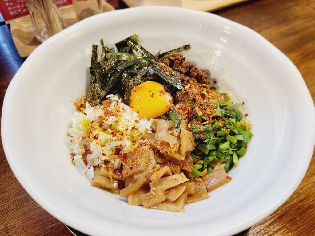 そしてこちらが「台湾まぜそば」です。このあと用事があったのでにんにく抜きにしました。