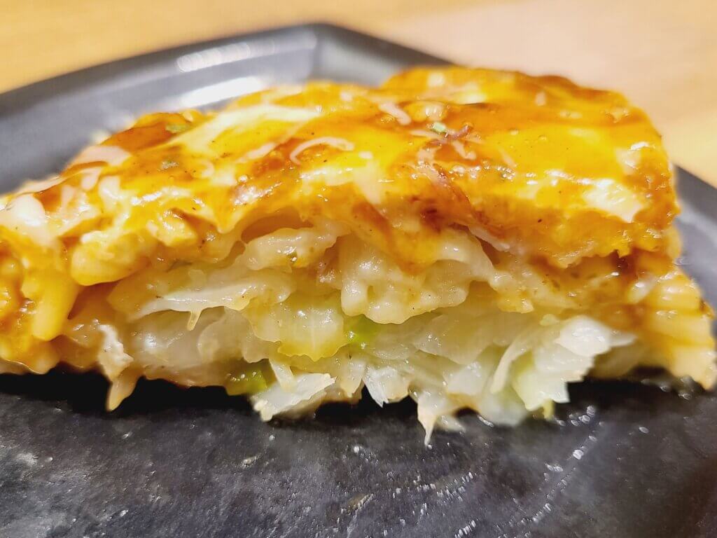 豚肉のうまみとキャベツの甘さの相性も良いので、最後までおいしくいただけます。