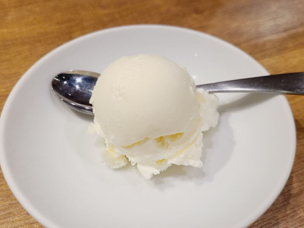 この日のデザートはアイスクリーム。これもうまい。口をさっぱりとさせてくれます。