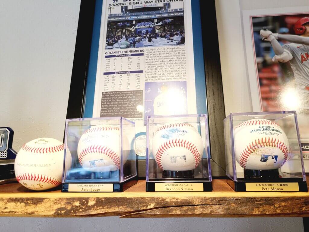 ちなみに一番左のボールは、2025年の日本シリーズ、阪神甲子園球場で行われた阪神vsソフトバンクの最終戦(第5戦)でソフトバンクの柳町選手が放ったファウルボールだそうです。そんなにキャッチできるものなの?