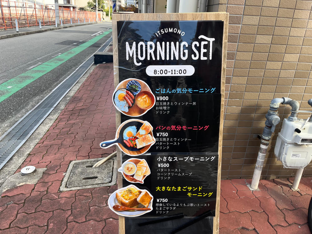 朝8時からモーニングが提供されており、パンまたはごはんを選ぶことができます。