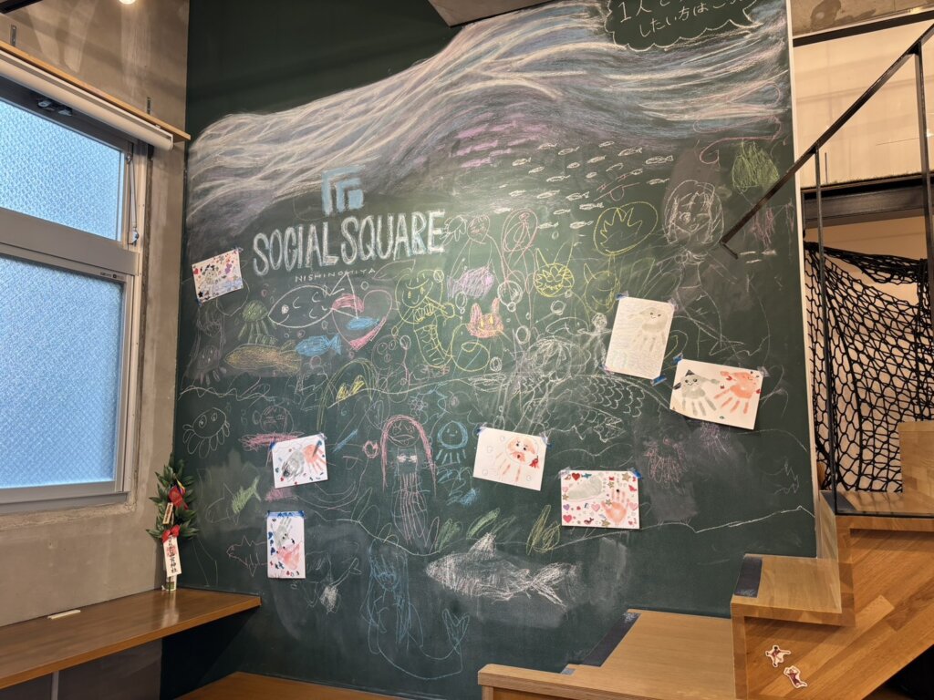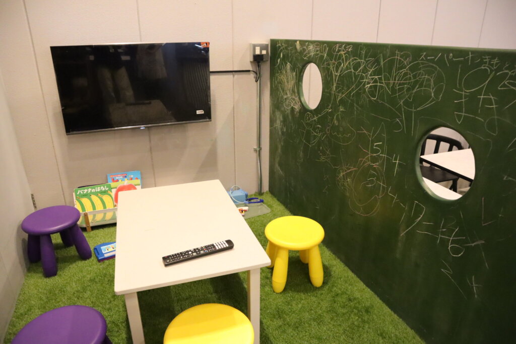 黒板や絵本もあり、子ども連れでも安心して過ごせる温かみのある雰囲気です。