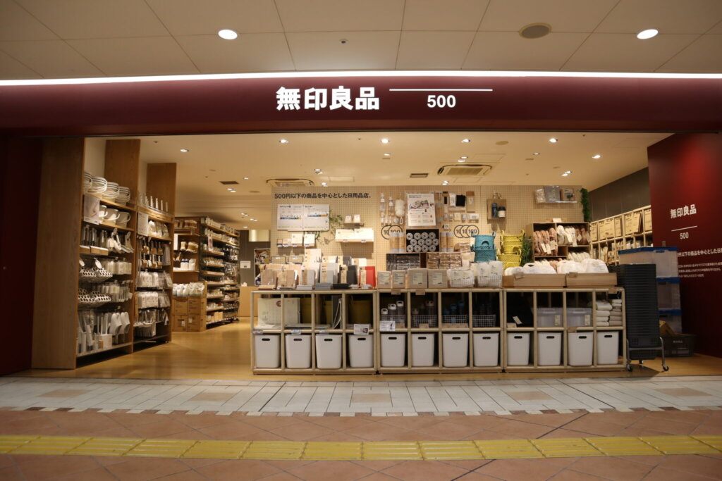 阪神西宮駅直結のエビスタ西宮2階にある「無印良品500 エビスタ西宮」は、500円以下のアイテムを中心に取りそろえた、日々の生活に寄り添うコンパクトなお店です。