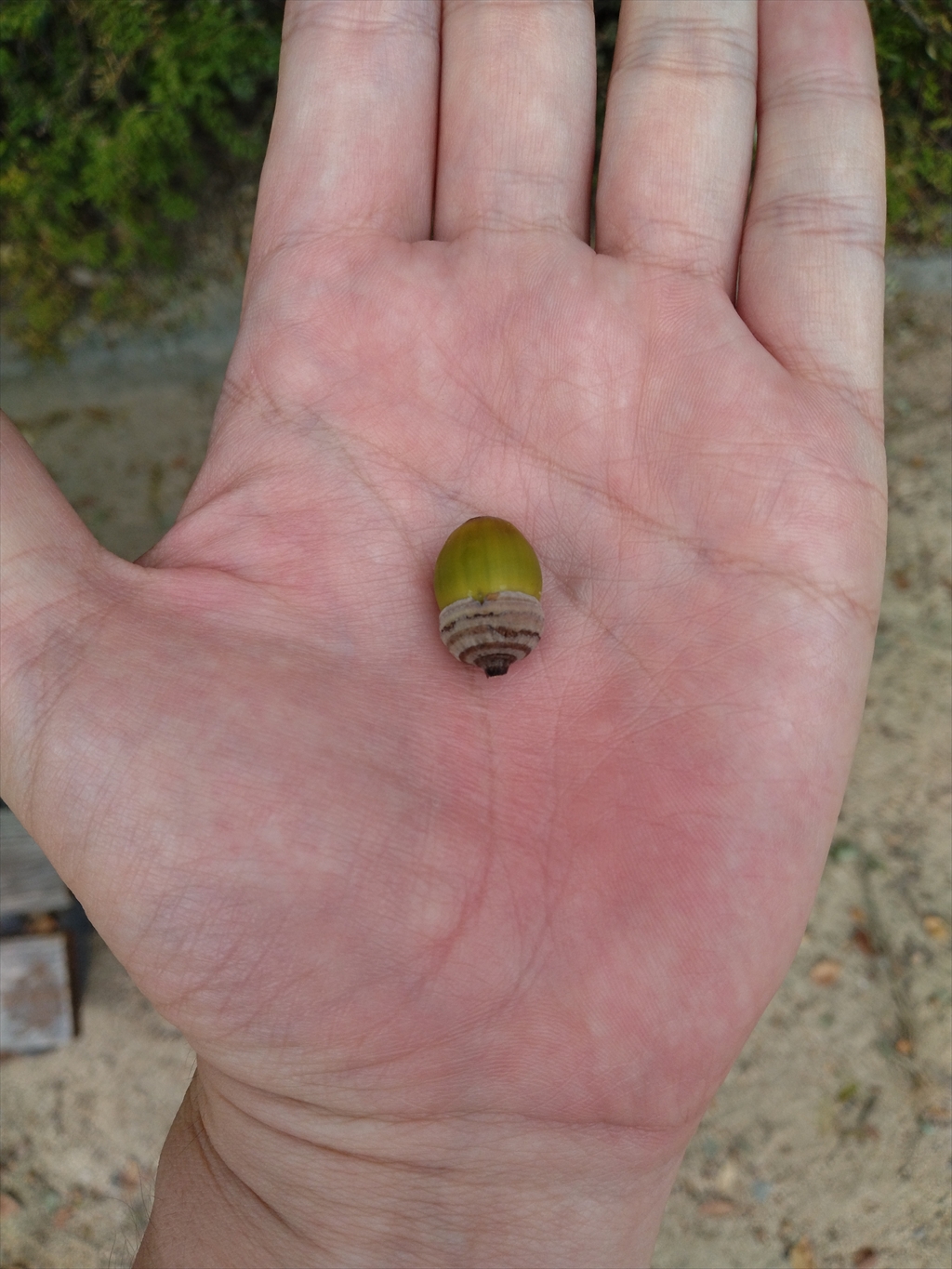 この日みたどんぐりの中では、比較的丸っこい形をしている気がしました。