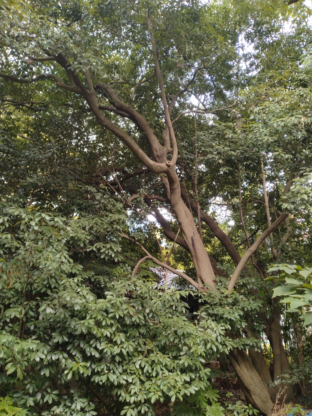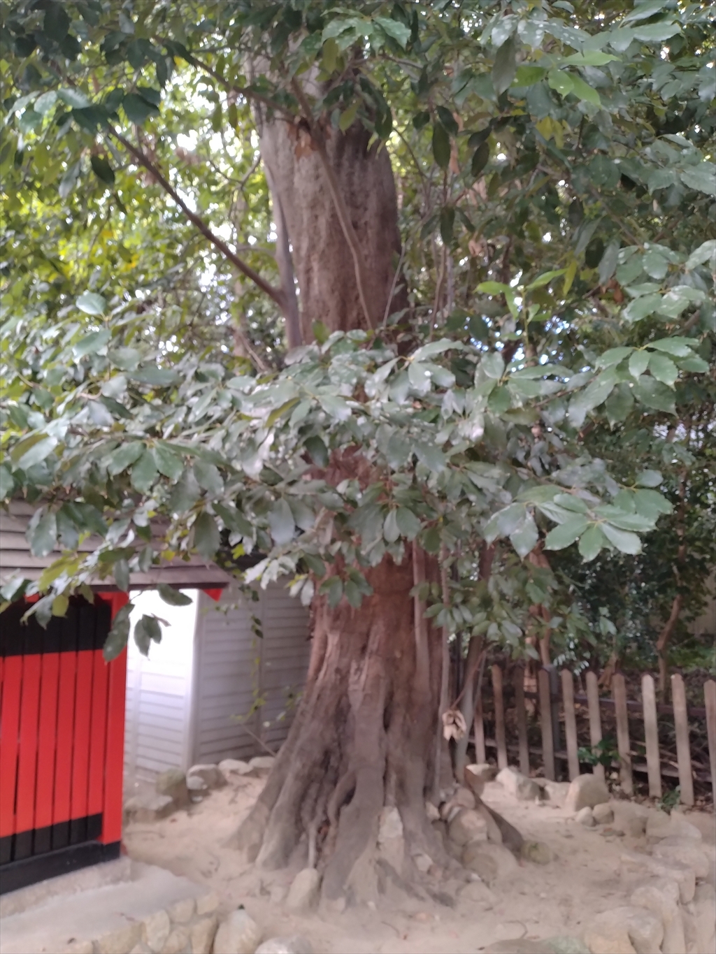 社殿の裏側あたりで、葉っぱの形が先ほどのカシとは違うため、ミズナラやコナラなどの仲間かもしれません。観察が不足していました。