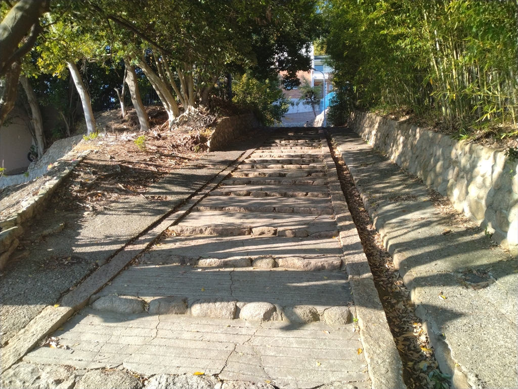 階段が途切れ、道路と突き当たります。