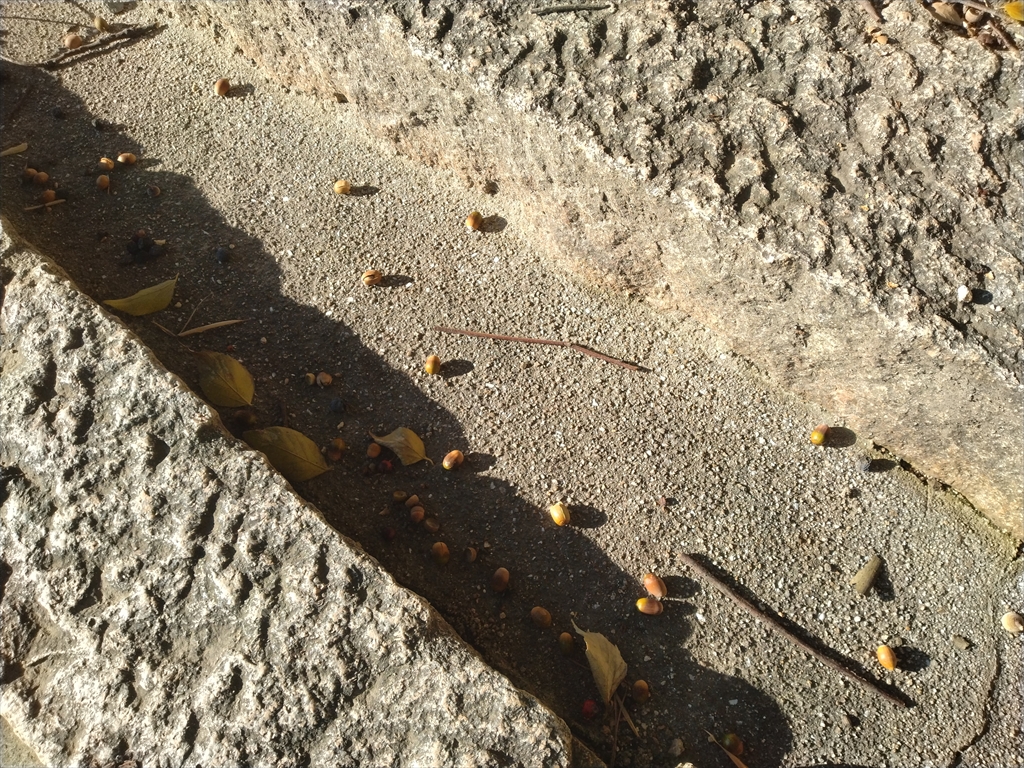 階段上に点々とどんぐりが転がっていました。