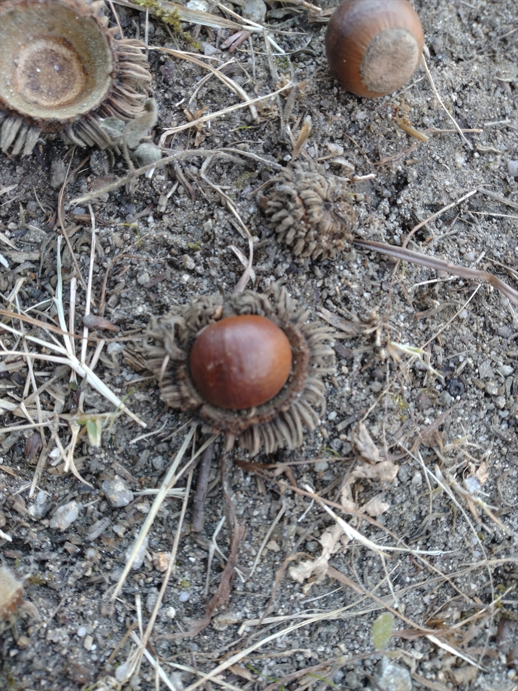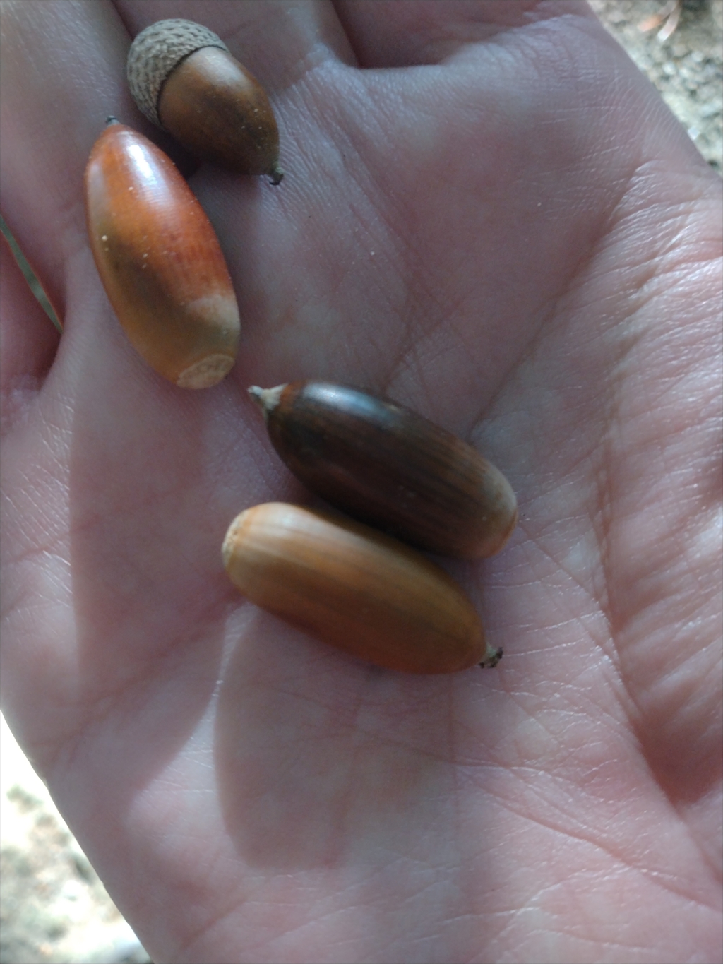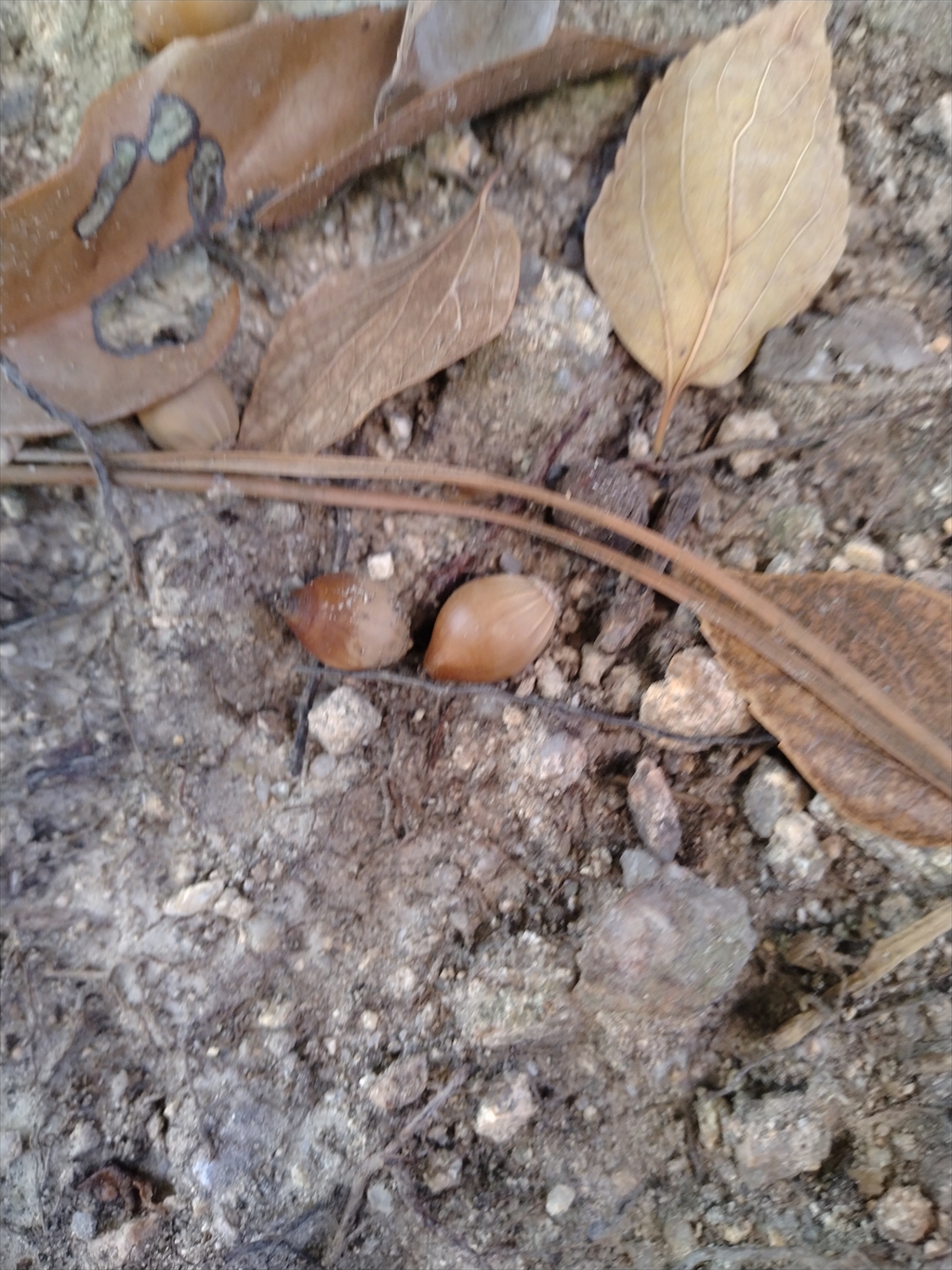 また、鳥居の近辺には細長いタイプのどんぐりも。マテバシイかな?