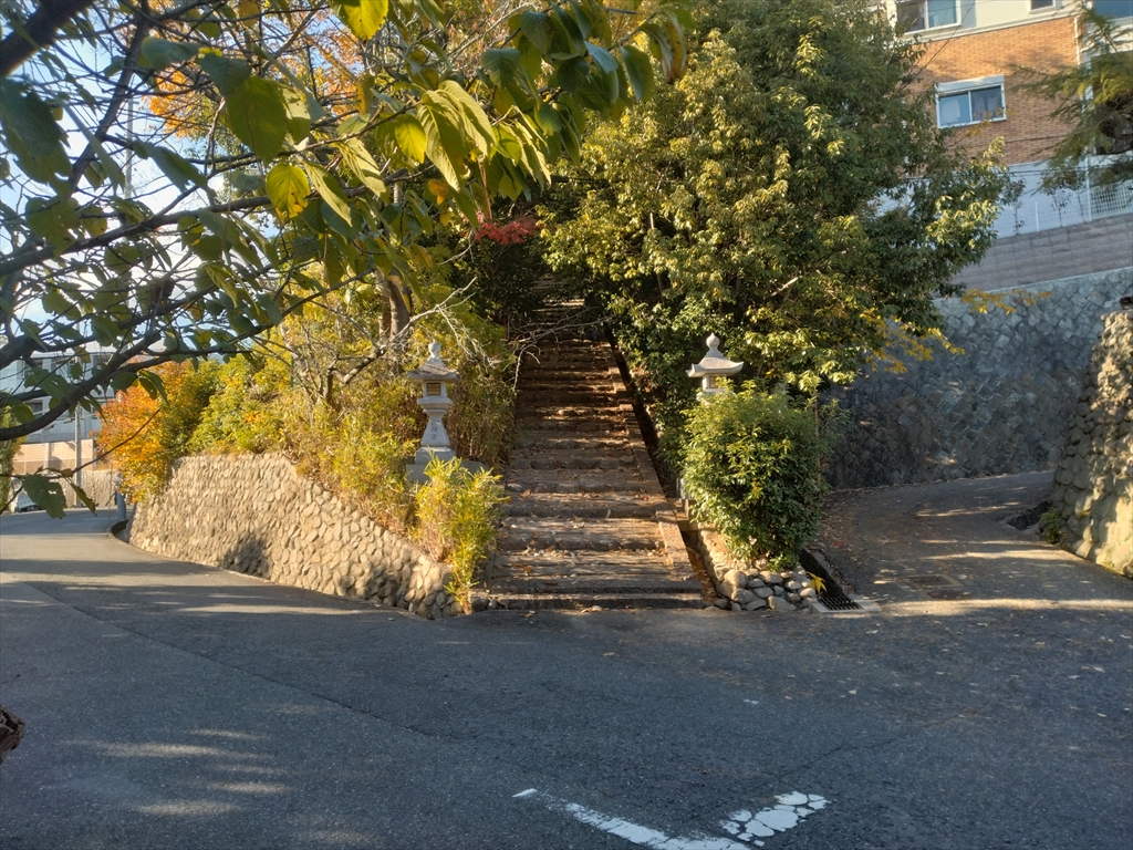 坂を登り始めてすぐ、北側に階段が現れました。