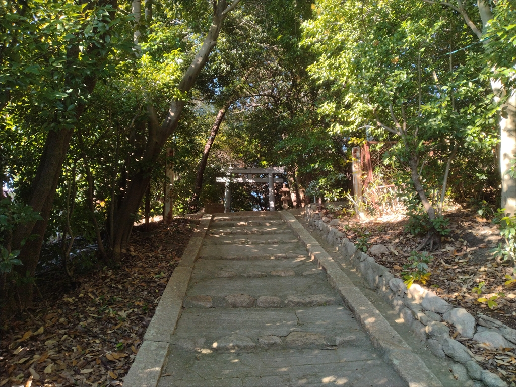数十メートルくらいですが、息切れしながら登っていくと鳥居が見えてきます。