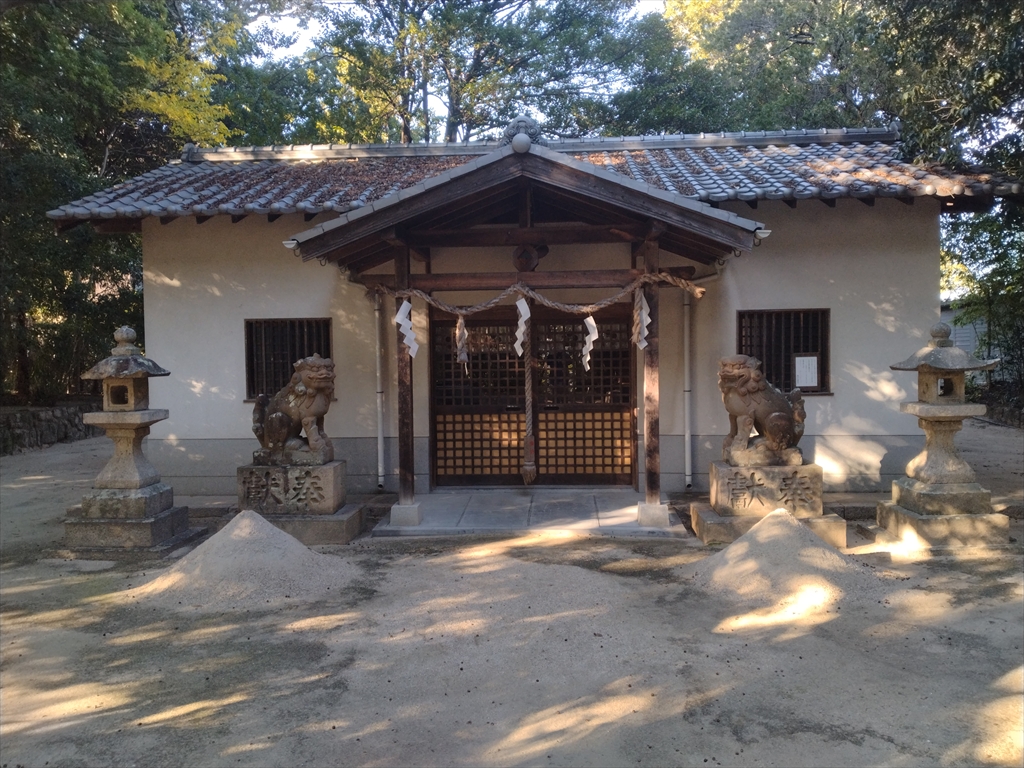 本殿の前には狛犬と盛砂(立砂とも)。