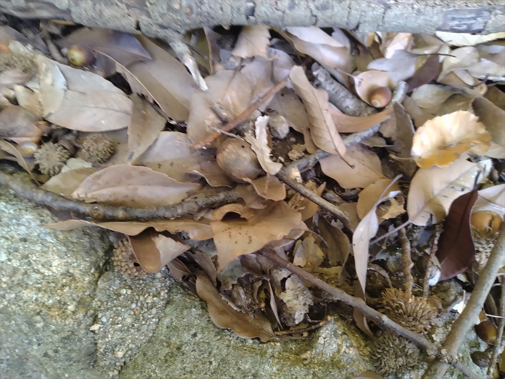 階段を2、3段登ったあたりで、本日のファーストどんぐり。
