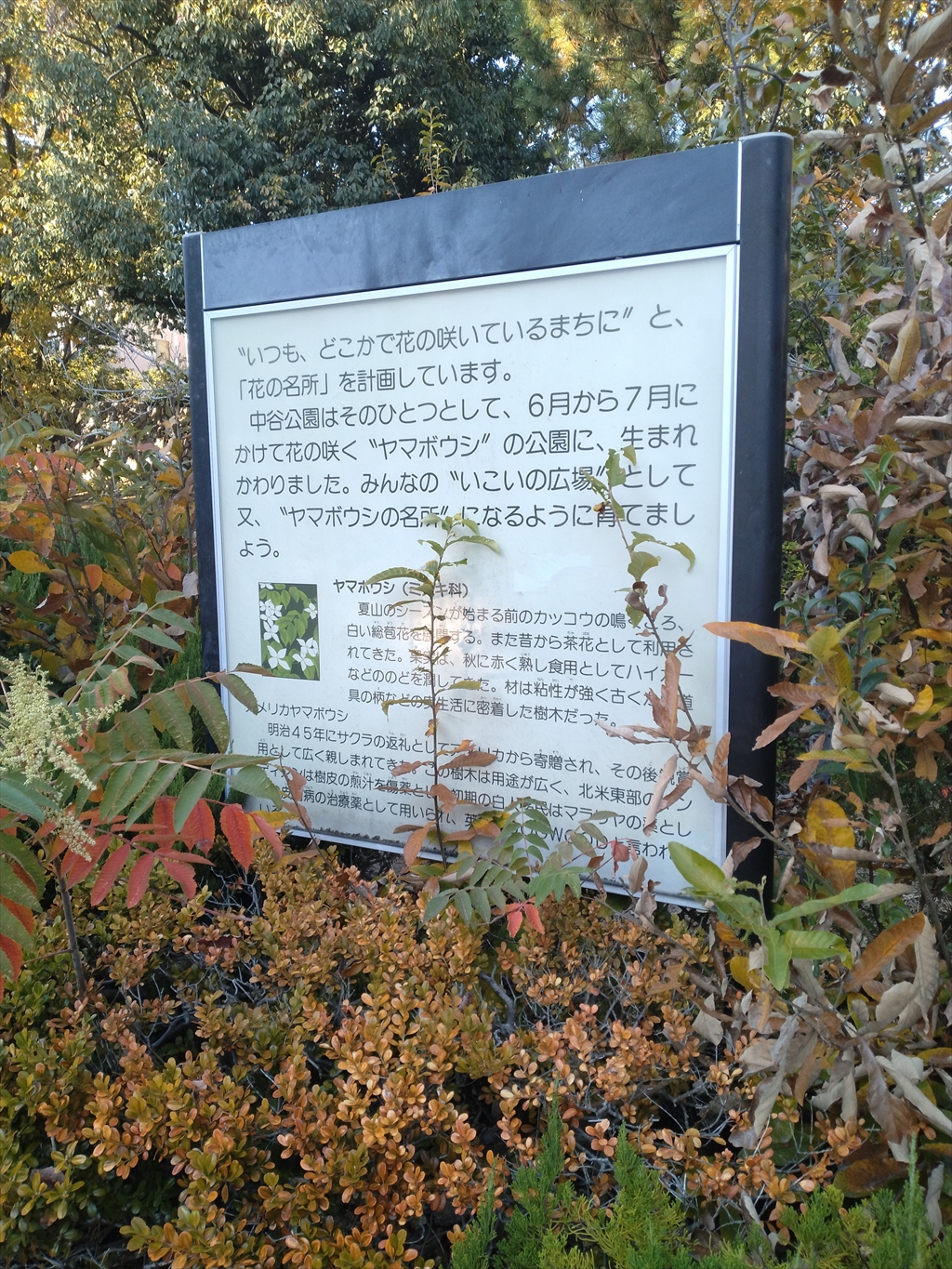 門戸天神社の階段を出て西に100メートルくらい進むと、中谷公園に出ます。
