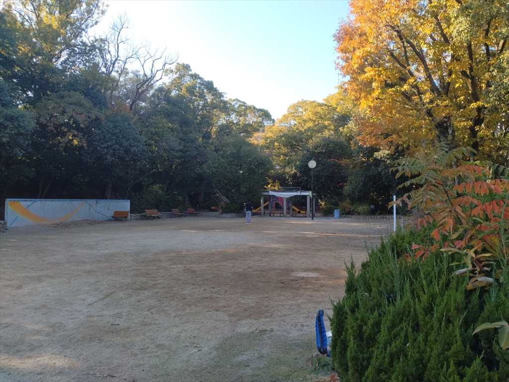 斜面を切り出した公園は木々に囲まれており、やはり大量のどんぐりが転がっていました。