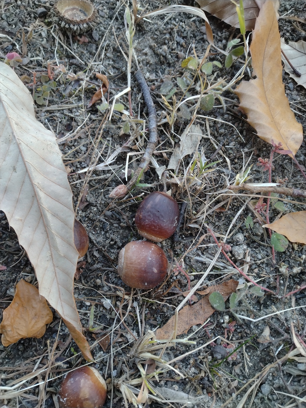 丸くて大きめのどんぐりは、テカリが強く、中谷公園にあった大きいどんぐりとは別種かもしれません。